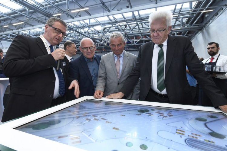 Auf dem Stand des Themenfeldes „Verkehrslösungen“ wurde von Hr. Hubschneider und Dr. Frey zahlreichen Besuchern der aktuelle Stand beim Testfeld Autonomes Fahren Baden-Württemberg erläutert, u.a. auch Ministerpräsident Kretschmann, Innenminister Strobl und Verkehrsminister Hermann.